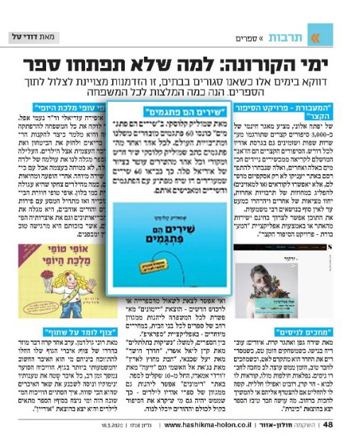 אתם מוזמנים לבקר באתר הספר – https://www.shirim-hem-pitgamim.co.il להתרשם גם מהספר "שירים הם פתגמים". ממליץ גם להיכנס ללשונית 'מן התקשורת' ולהתפעל מהתוצאות של קמפיין יחסי הציבור. המשך הצלחה, יהורם, בכל מעשיך!".