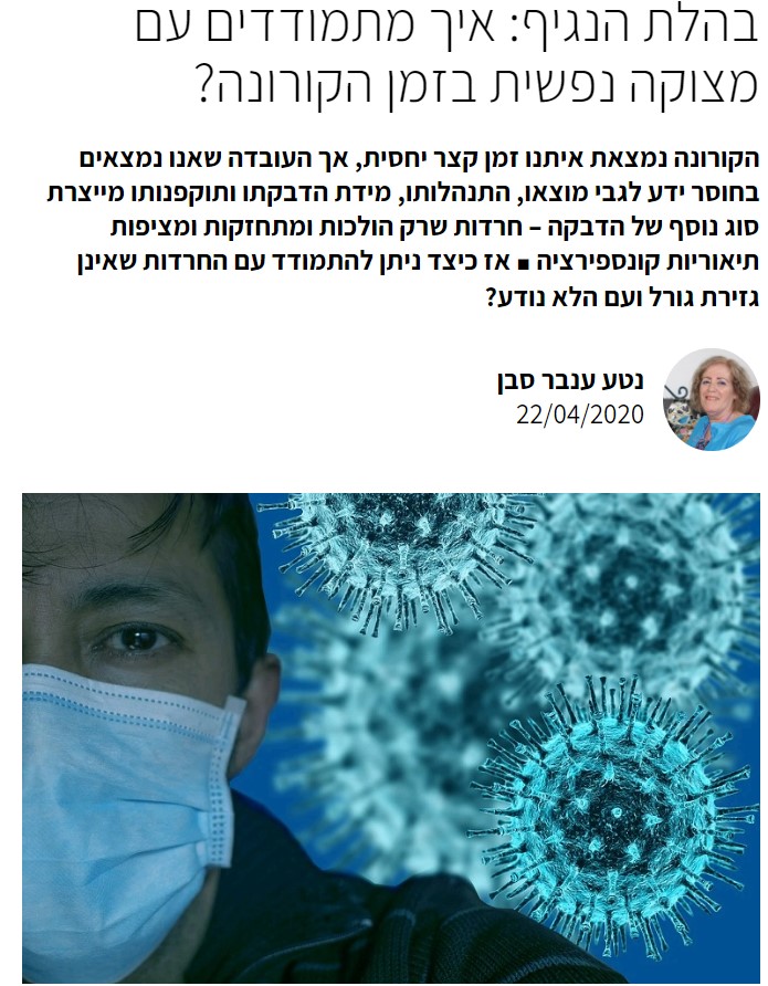 בתקופה מורכבת ומאתגרת זו של התפשטות נגיף הקורונה ברחבי העולם ובישראל, דואג משרדנו לפרסם בכלי התקשורת הארציים כתבות, מדורים וטורים אישיים ומקצועיים בהקשר אקטואלי, שנכתבו על ידי מטפלים ברפואה משלימה, פסיכולוגיים, מדריכי הורות, מטפלים רגשיים, מאמנים, יועצי שיווק, סופרים וסופרות ועוד.